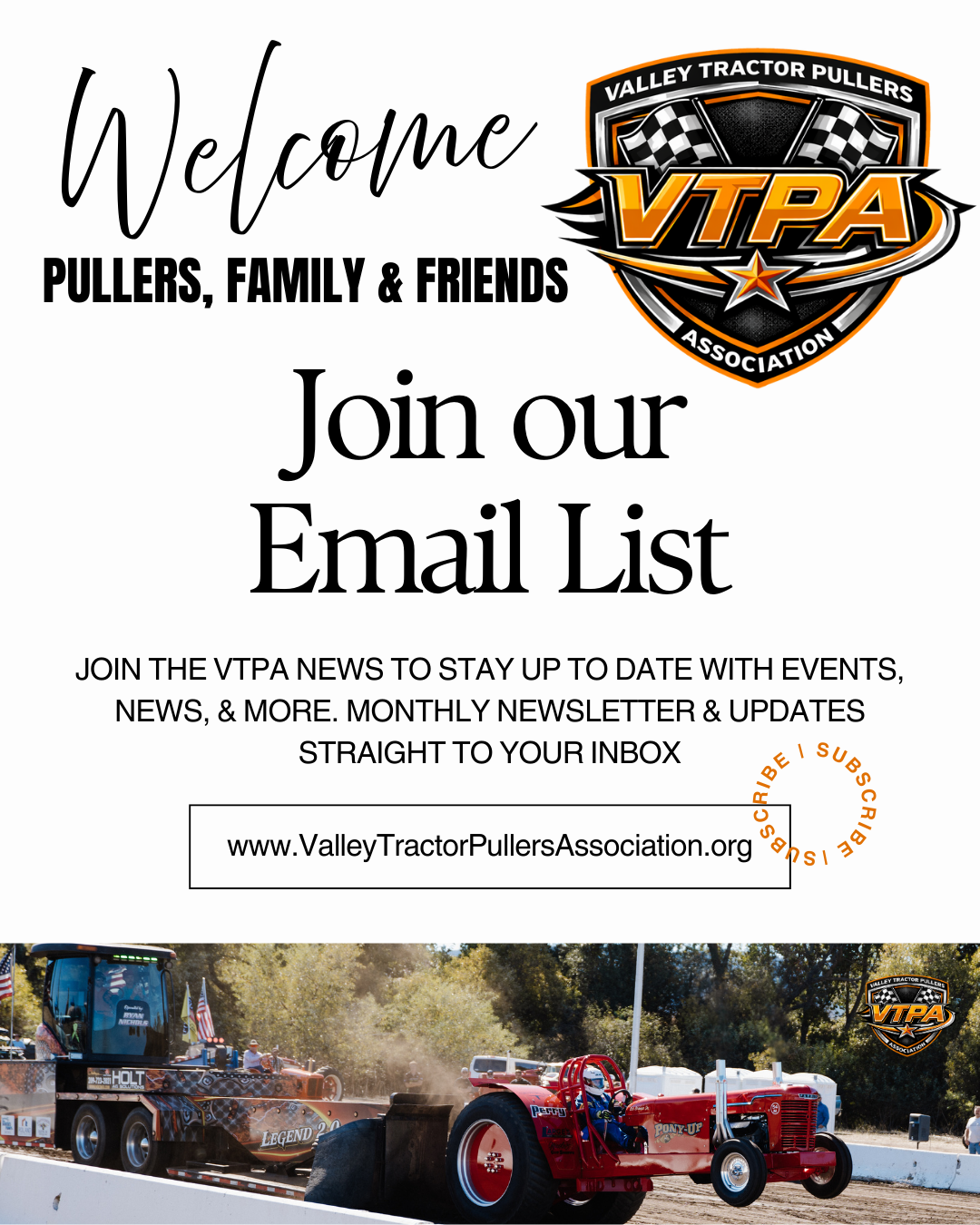 Stay Connected with VTPA * Join the VTPA NEWS * Stay Connected with VTPA * Join the VTPA NEWS * Stay Connected with VTPA * Join the VTPA NEWS * Don’t miss a pull. Join our email list for event updates, schedules, and important club announcements — sent straight to your inbox. Sign Up Here